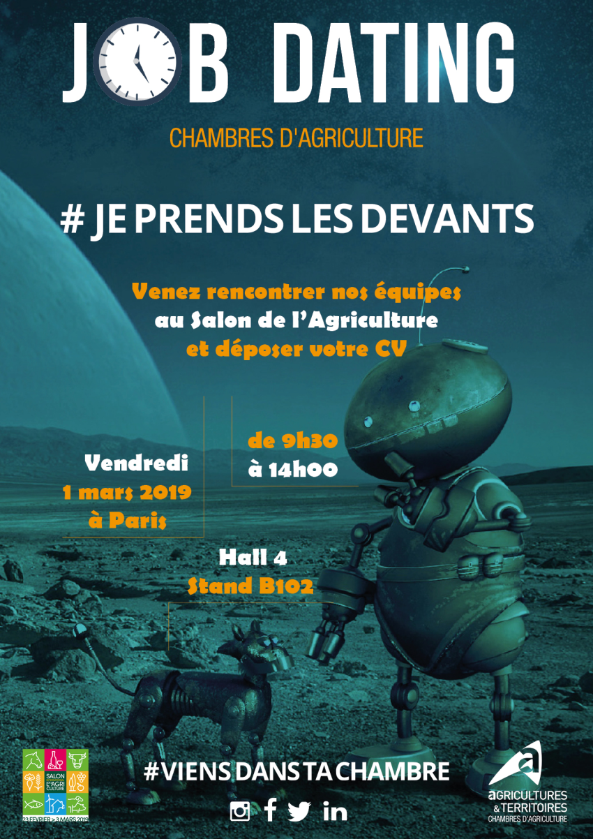 Dans le cadre du Salon de l'Agriculture 2019 qui aura pour fil rouge, "Des hommes, des femmes et des métiers", le réseau des Chambres organise pour la première fois, le vendredi 1 mars, une journée JOB DATING et des mini-conférence dédiées, pour  :
