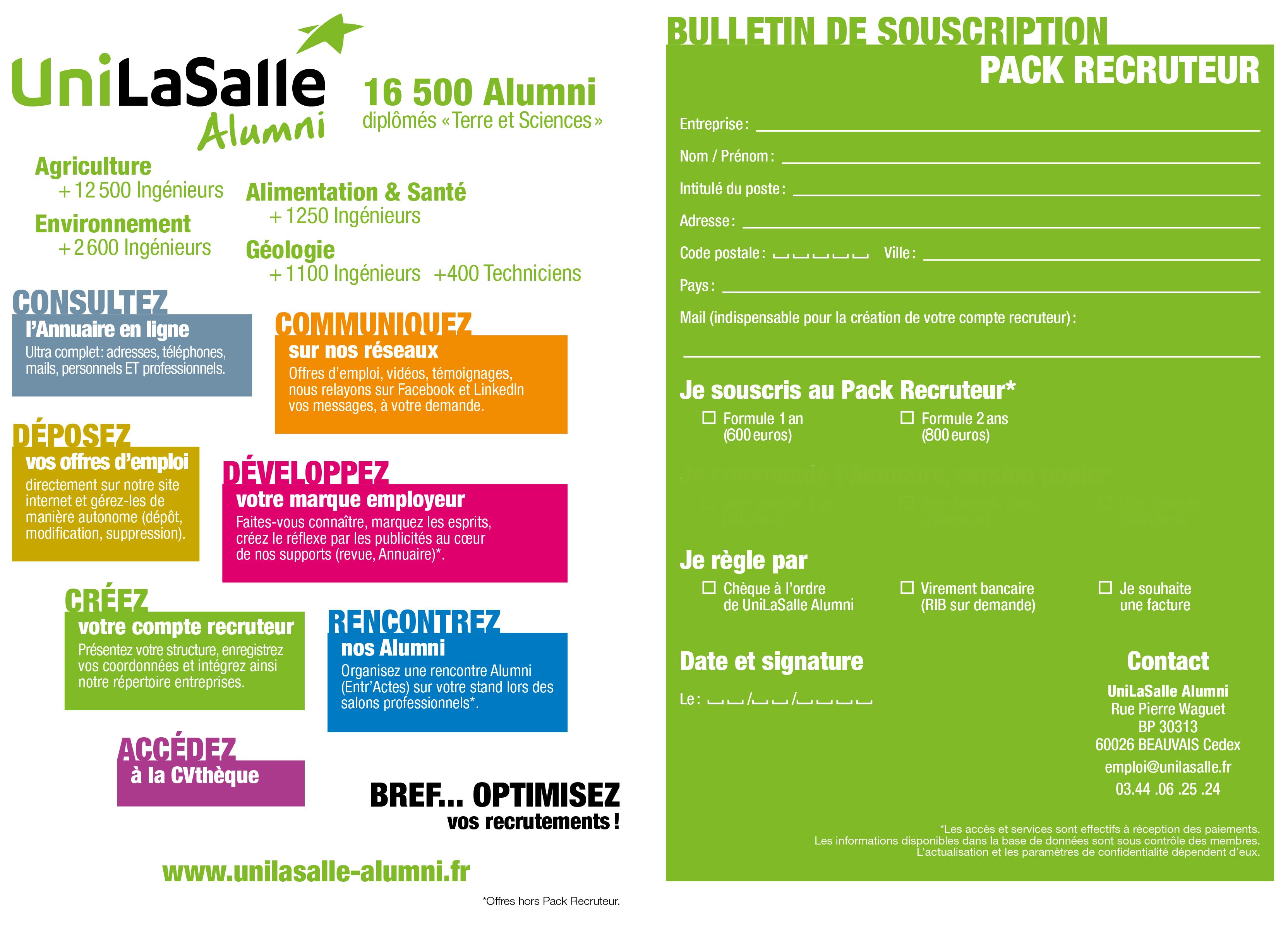 Among them is your next collaborator. We propose to find this nugget! With the recruiter pack, UniLaSalle Alumni becomes your partner in your quest for the ideal collaborator. What we offer :