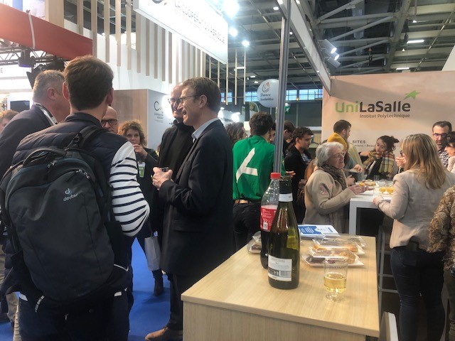 Mardi 1er mars, il est 17h30. Sur le stand UniLaSalle, une cinquantaine d'Alumni, salariés et étudiants se retrouvent pour un Entr'Actes. L'occasion d'échanger, de se retrouver et de créer du lien entre étudiants et Alumni.