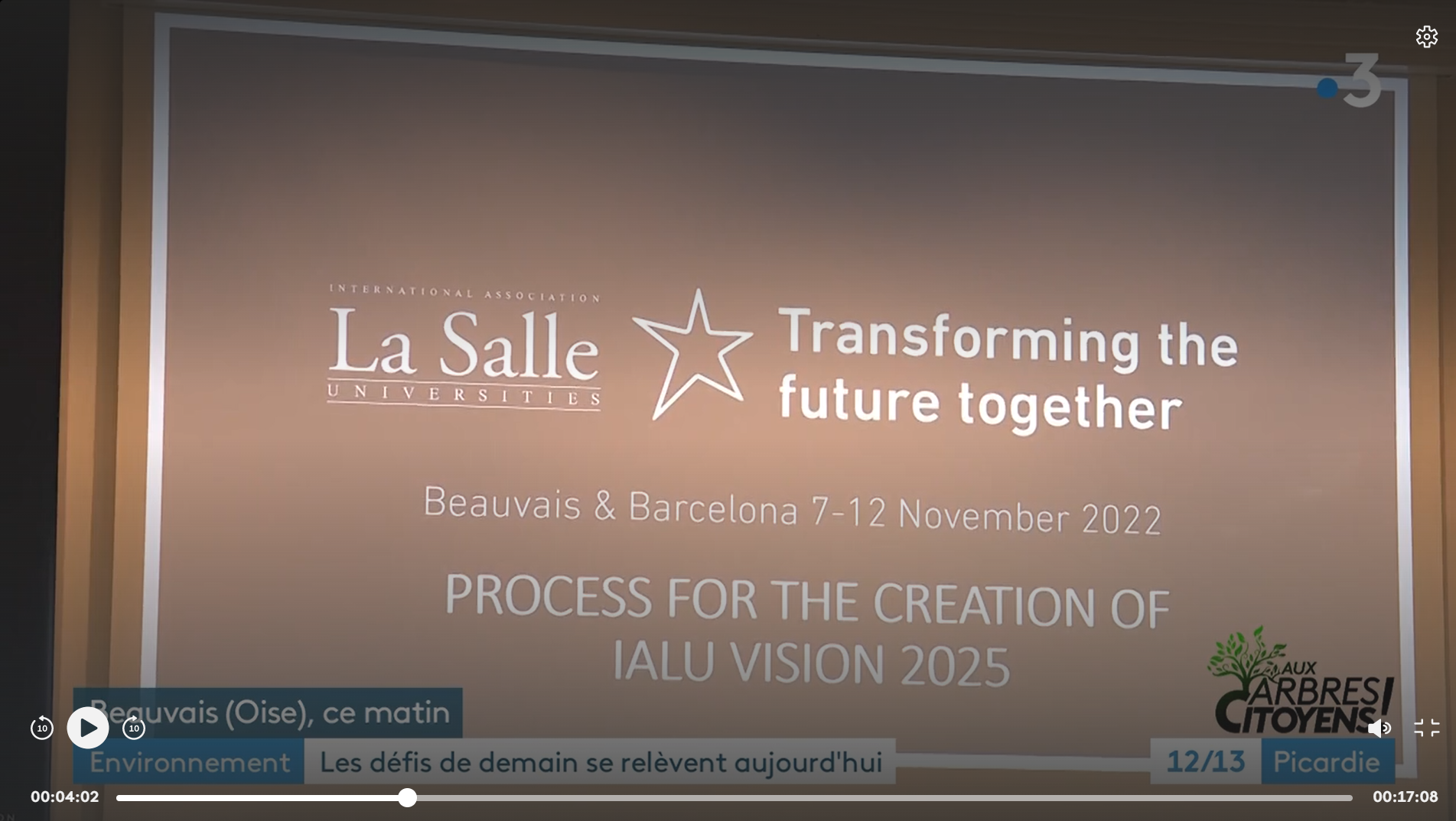 France 3 revient d’ailleurs sur la 13e édition d’Encuentro qui s’est déroulée sur le campus de Beauvais du 7 au 9 novembre. Cet événement qui a réuni une délégation de plus de 100 personnes issues des directions des 75 universités du réseau La Salle était aussi l’occasion d’aborder la question de la place de l’environnement dans les programmes de formation et la création d’universités en Afrique. L’objectif du réseau La Salle monde est de former toutes les jeunes générations aux questions de l’environnement en "formant des décideurs éclairés et responsables" comme l’explique Geoffroy BELHENNICHE, directeur de la transition écologique et sociale du Groupe UniLaSalle. C’est notamment la raison d’être de la stratégie Uni4change mise en place par l’école.