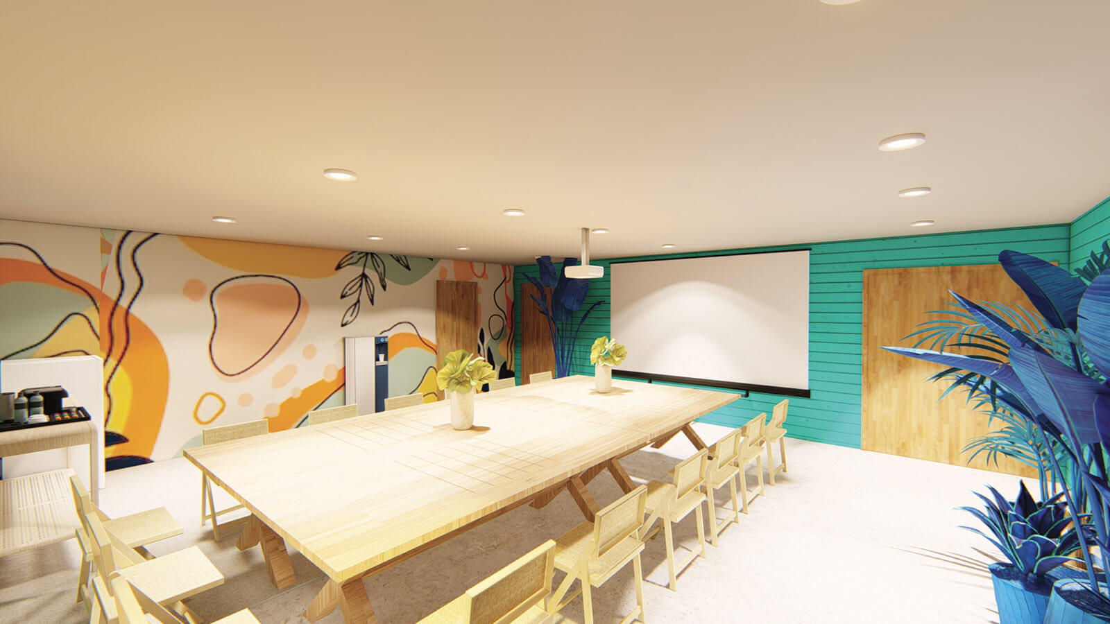 Le complexe comprend également un restaurant et un bar, avec deux terrasses prévues pour le printemps, offrant un espace convivial où les gens peuvent se rencontrer et discuter. Trois salles différentes sont disponibles à la location pour des événements tels que des réunions d'entreprises, des séminaires, des team-buildings, des anniversaires et des cours de yoga.