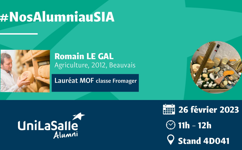 Romain sera présent dimanche 26 février, sur le stand d'UniLaSalle (Hall 4 - stand 041) de 11h à 12h pour vous parler bien entendu des fromages de notre terroir et d'Appelation d'origine protégée (AOP). Un moment de partage autour du goût qui sera, à coup sûr, vous ouvrir l'appétit avant l'heure de déjeuner !