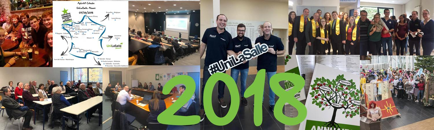 2018, ce sont 68 Apéritifs Citadins qui se sont déroulés en France et à l'étranger, 12 Entr'Actes sur les salons professionnels, 14 Week-end de promotions organisés par l'équipe UniLaSalle Alumni ! La participation de nombreux Alumni aux évènements comme les Saint-Éloi, Sainte-Marthe et Sainte-Barbe, AgoraJob ou encore les interventions auprès des étudiants sans oublier leurs dons auprès du Mécénat pour aider les étudiants en difficultés financières !