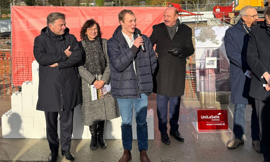 Le mardi 7 janvier 2025, UniLaSalle Amiens a posé la première pierre de sa future résidence étudiante, située rue de la Résistance. Ce projet, réalisé en partenariat avec AMSOM Habitat, marque une étape importante pour répondre aux besoins croissants de logements étudiants dans la région.