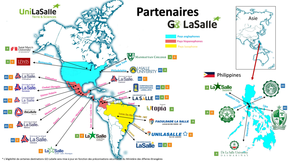 The GO-LaSalle program offers students the opportunity to study and learn how to become an engineer elsewhere than in Beauvais, Rouen and Rennes’ campuses. Twenty-four LaSalle universities are going to welcome engineering students from UniLaSalle as part of the GO-LaSalle initiative. Last year, 173 students started their 5th semester in Mexico, the USA, the Philippines, Costa Ricca, Colombia and Brazil (see Trait d'union 393, special file). A new set of students is preparing to enter the program by the end of July in order to live a deep intercultural experience and discover other systems. As an Alumni based in those countries, how about organizing a meeting with UniLaSalle engineering students? We put at your disposal groups that will allow you to quickly contact each other. An upcoming communication will be personally addressed to you, watch your mails !