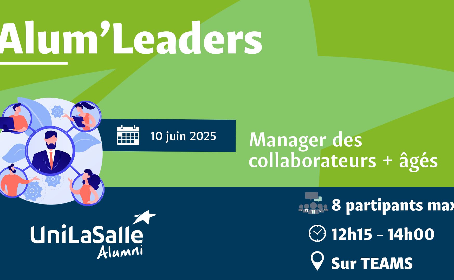 Bonjour à tous,   L’équipe « Carrière » d'UniLaSalle Alumni vous propose de participer à un atelier de co-développement autour d’une thématique clé « Comment manager des collaborateurs plus âgés ? »   Mardi 10 juin à 12h15 en visio   Ce moment d’échange permettra aux participants managers d’apporter...